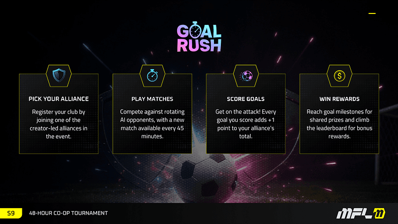 This community has always thrived on competition — and even more on collaboration. Goal Rush is both. It’s a chance to prove that when we come together, we can do more than just play the game — we can grow it.