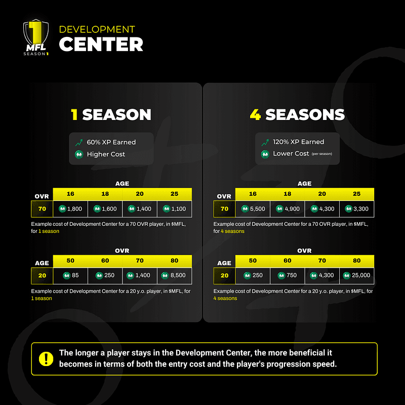 The $MFL fee depends on the player’s OVR rating and the number of seasons they will stay. This cost is an investment in their future growth.
