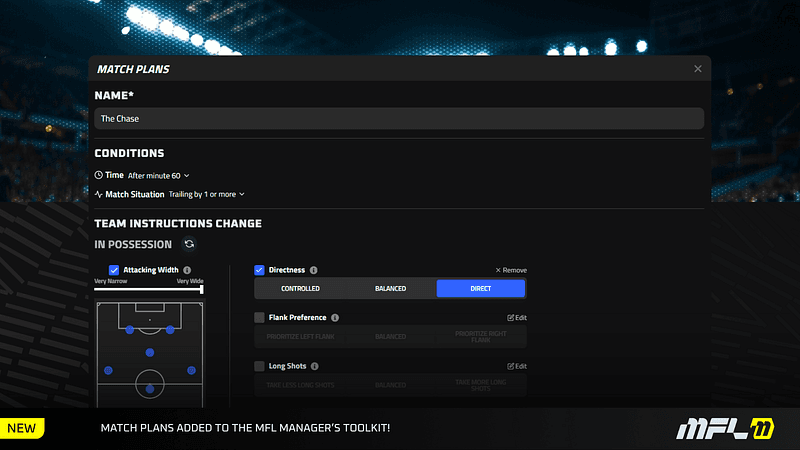 Before Match Plans, your tactics were locked at kickoff. You prepared, you planned, and then you watched it play out. If your setup wasn’t working, you couldn’t adjust.