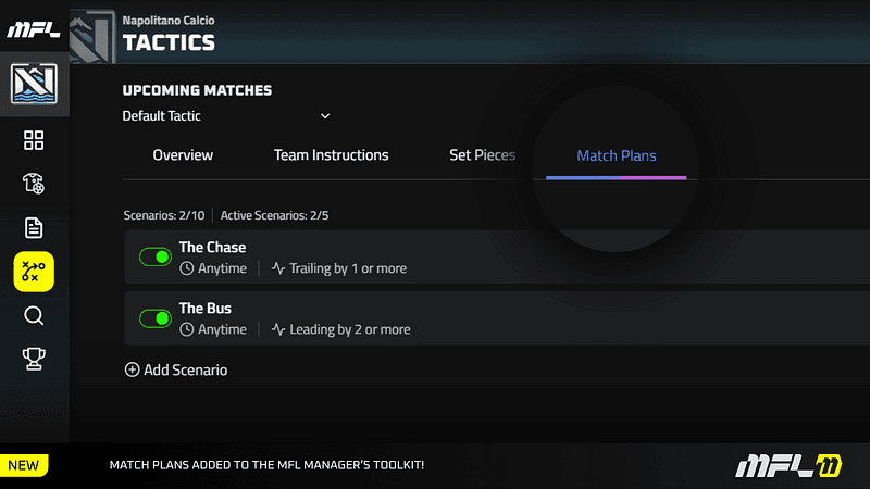 When match conditions are met, your scenarios trigger automatically at the next stoppage. You’ll see them fire in real time in the match events feed, right alongside goals and assists.