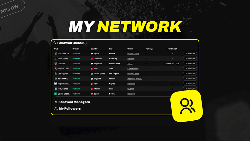 With My Network, you can now follow clubs and users to track your rivals, scout top managers, or just keep tabs on friends.